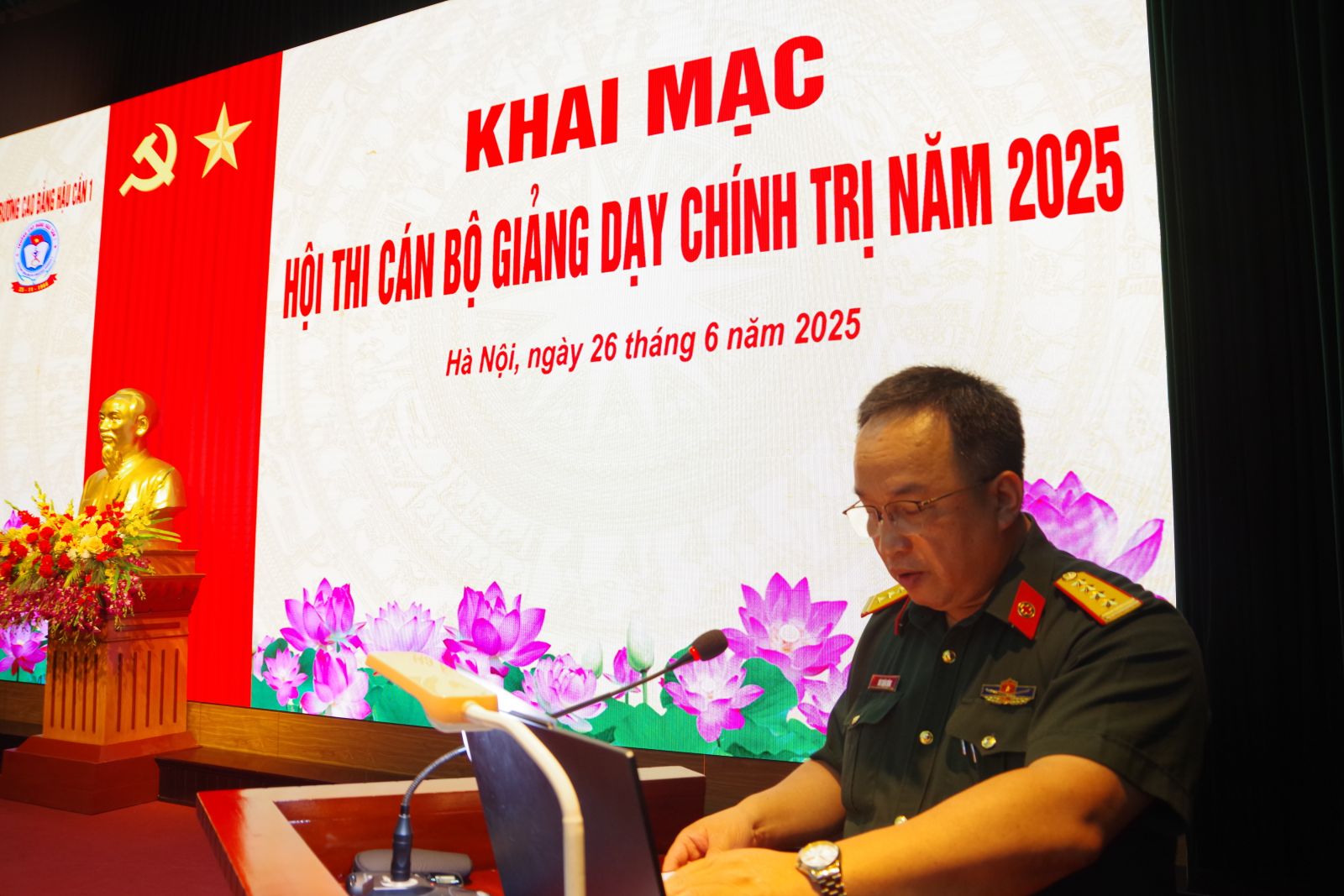 Trong 2 ngày 26-27/6/2025, Trường cao đẳng Hậu cần 1, Tổng cục Hậu cần - Kỹ thuật đã tổ chức thành công Hội thi cán bộ giảng dạy chính trị năm 2025. Đại tá Bùi Xuân Dũng, Bí thư Đảng ủy, Chính ủy Nhà trường, Trưởng ban Tổ chức Hội thi dự và chỉ đạo.