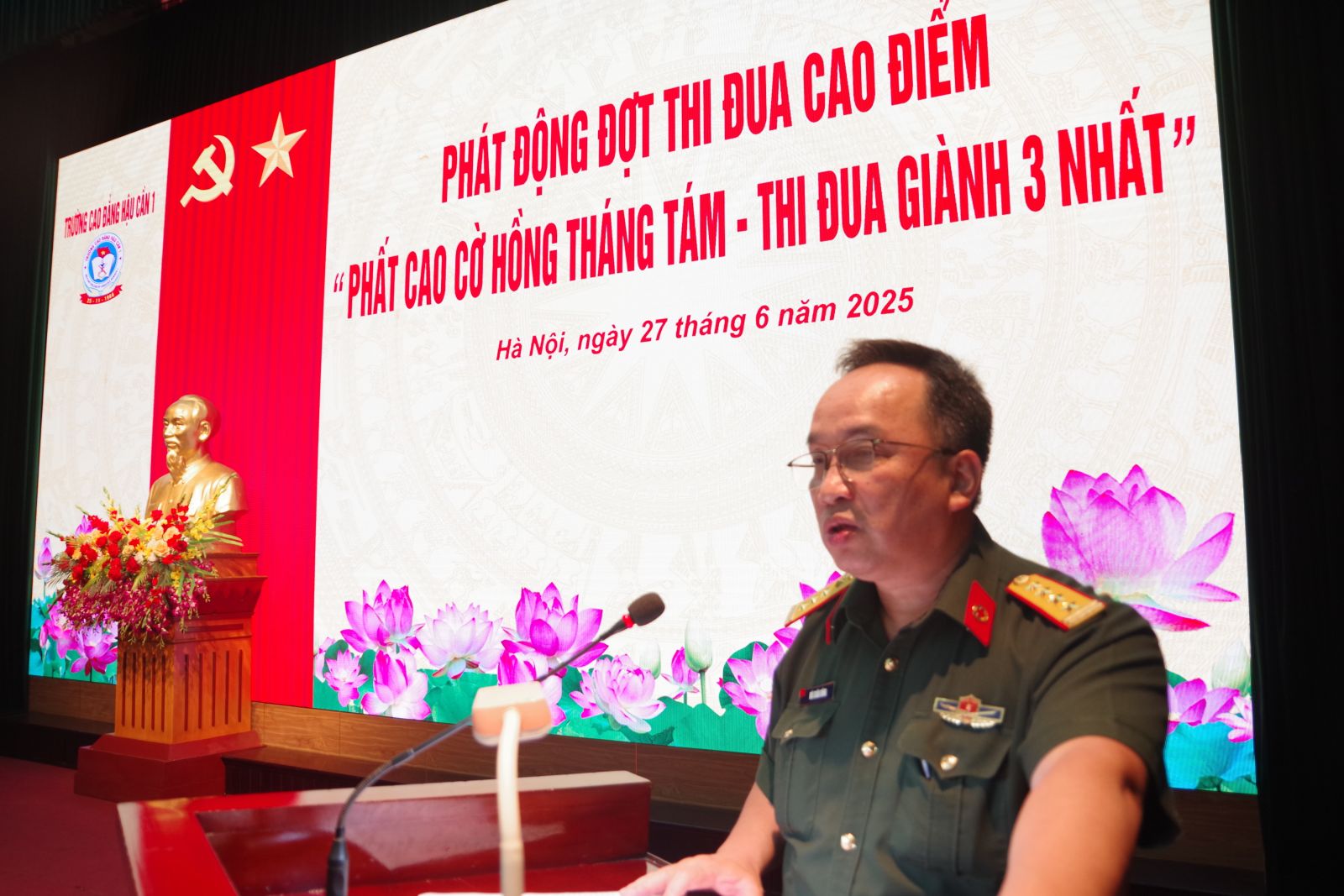 Chiều cùng ngày, Nhà trường đã tổ chức phát động đợt thi đua cao điểm chào mừng kỷ niệm 80 năm Cách mạng tháng Tám thành công (19/8/1945 - 19/8/2025) và Quốc khánh nước Cộng hòa xã hội chủ nghĩa Việt Nam (02/9/1945 - 02/9/2025), chào mừng Đại hội thi đua Quyết thắng toàn quân lần thứ XI, Đại hội đại biểu Đảng bộ Tổng cục Hậu cần - Kỹ thuật lần thứ I và Đại hội đại biểu Đảng bộ Quân đội lần thứ XII với chủ đề “Phất cao cờ hồng tháng Tám - Thi đua giành 3 nhất”.