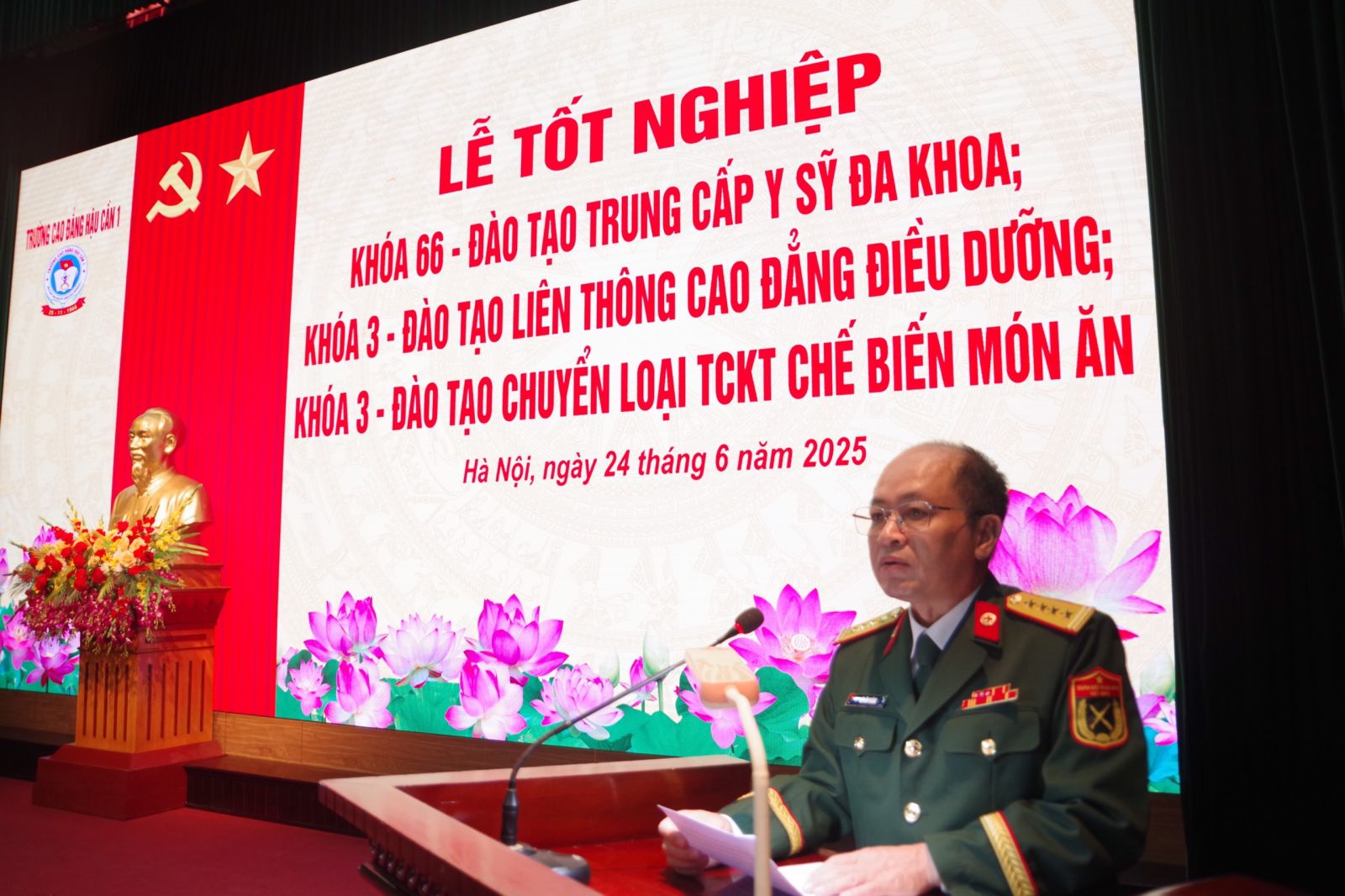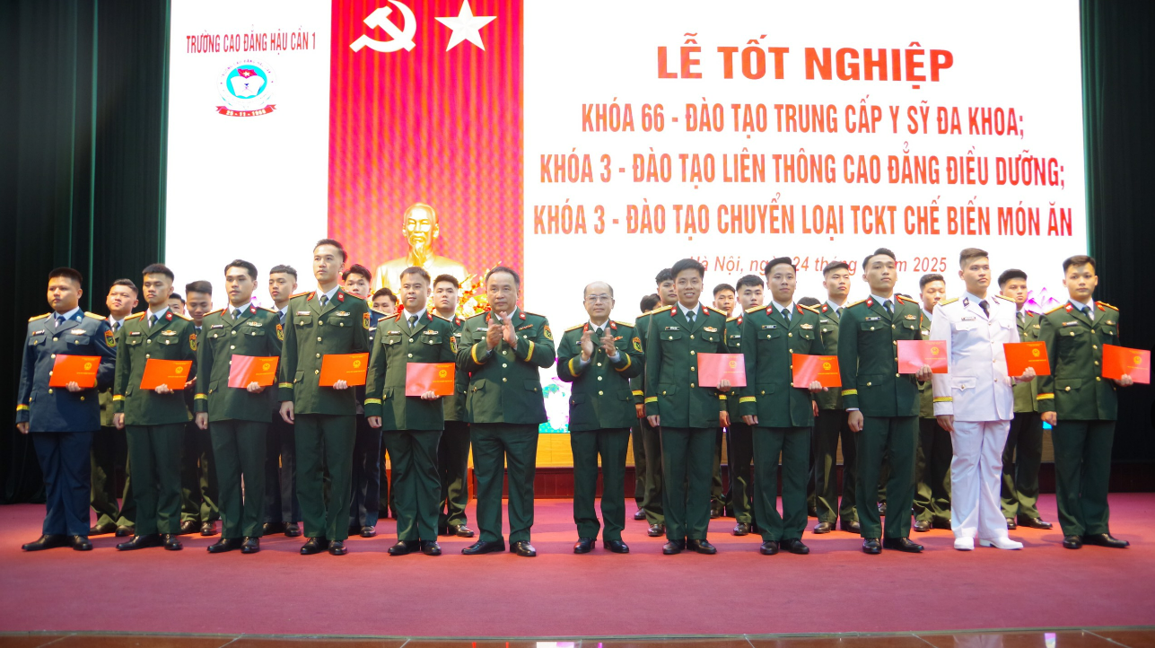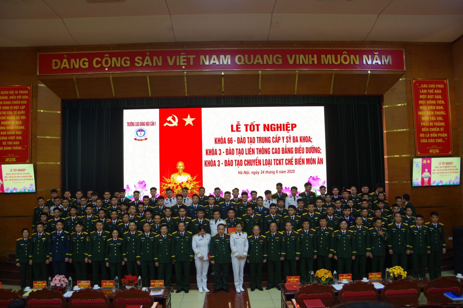 Sáng ngày 24/6/2025, tại Hội trường lớn của Trường Cao đẳng hậu cần 1/Tổng cục Hậu cần - Kỹ thuật, Nhà trường đã long trọng tổ chức Lễ tốt nghiệp cho các học viên Cao đẳng liên thông Điều dưỡng CLT103, Y sĩ dài hạn K366, Chuyển loại trung cấp chế biến món ăn KCL503.