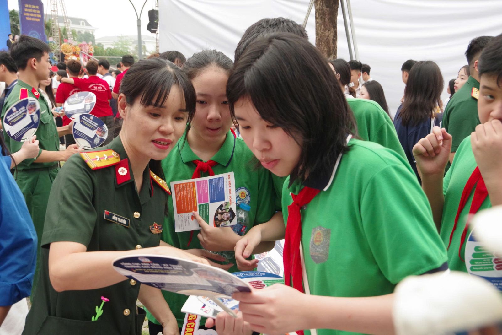 Đoàn tuyên truyền, hướng nghiệp tuyển sinh của Nhà trường tích cực tuyên truyền hướng nghiệp tuyển sinh, cung cấp thông tin, định hướng cơ hội học tập, tương lai nghề nghiệp cho học sinh về các ngành nghề Y, Dược, Điều dưỡng đang đào tạo tại trường.