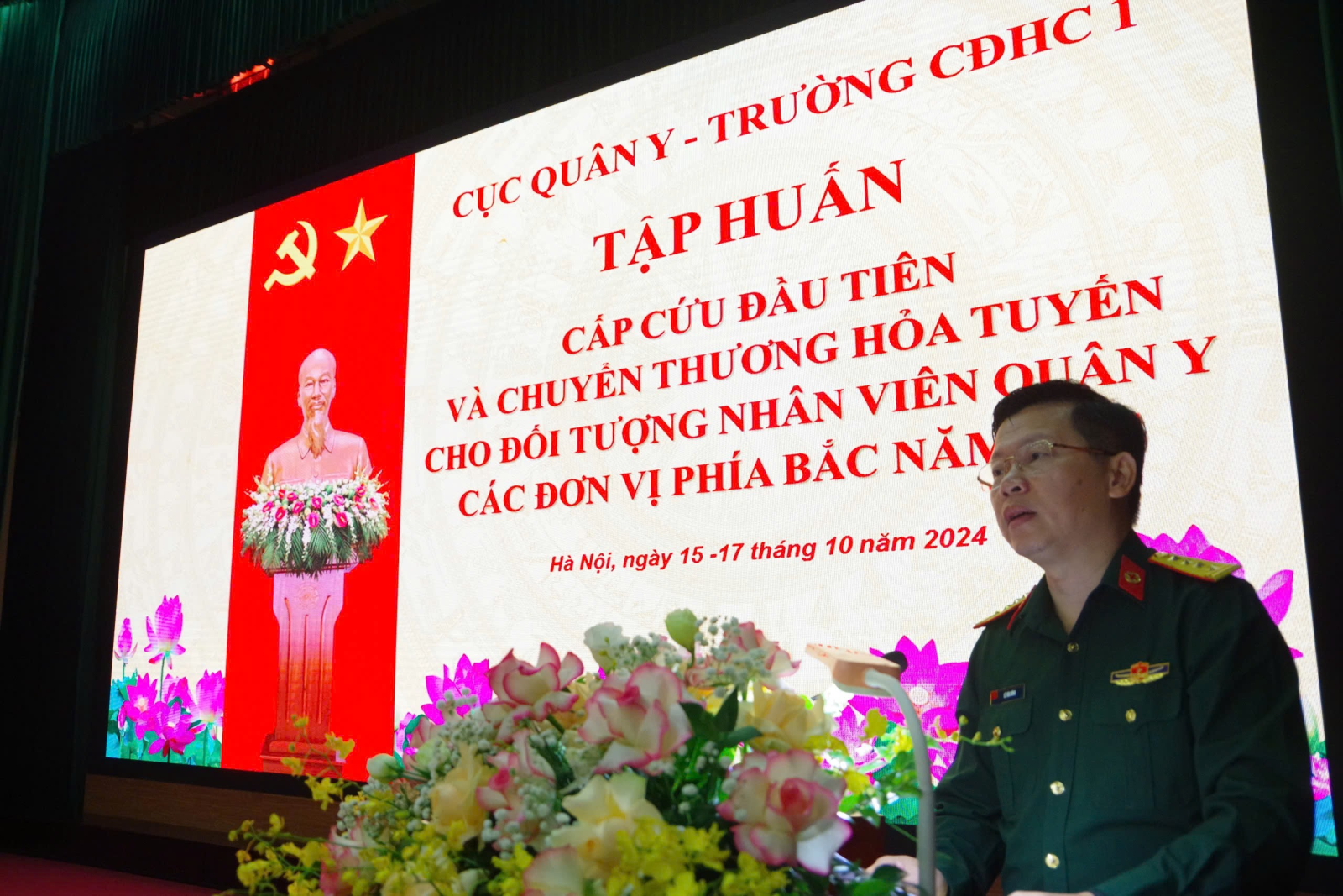 Cục Quân y phối hợp với Trường Cao đẳng Hậu cần 1 tổ chức khai mạc Hội nghị tập huấn cấp cứu đầu tiên và chuyển thương hỏa tuyến cho đối tượng nhân viên quân y các đơn vị phía Bắc năm 2024.