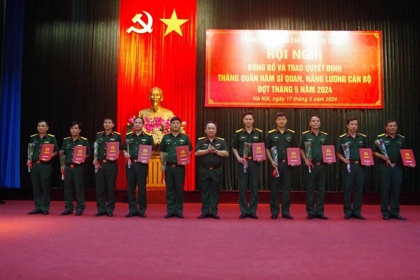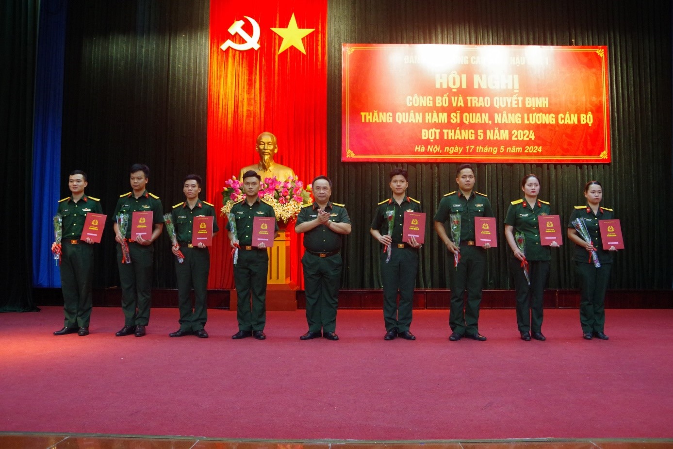 Đảng ủy Trường Cao đẳng Hậu cần 1 tổ chức hội nghị công bố và trao quyết định thăng quân hàm sĩ quan, nâng lương cán bộ đợt tháng 5 năm 2024