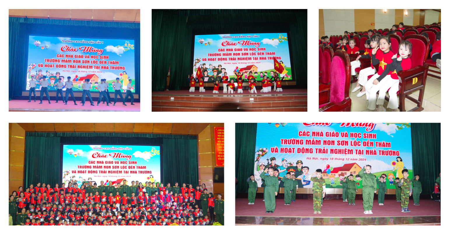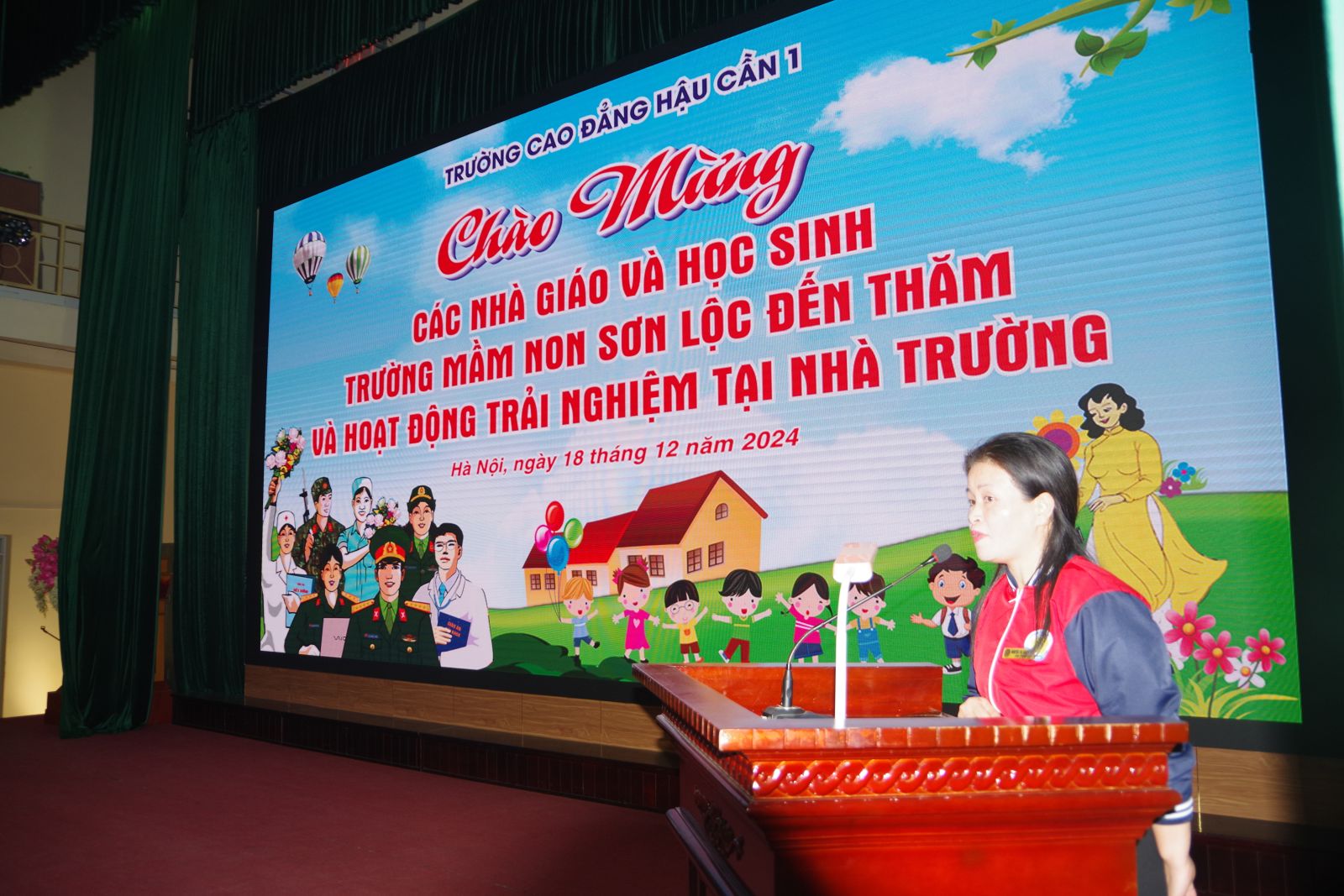 Ngày 18-12, Trường Cao đẳng Hậu cần 1 phối hợp với Trường Mầm non Sơn Lộc, thị xã Sơn Tây, thành phố Hà Nội tổ chức chương trình tham quan, trải nghiệm cho các cháu học sinh nhân dịp kỷ niệm 80 năm Ngày thành lập Quân đội nhân dân Việt Nam (22/12/1944-22/12/2024), 35 năm Ngày Hội Quốc phòng toàn dân (22/12/1989-22/12/2024).