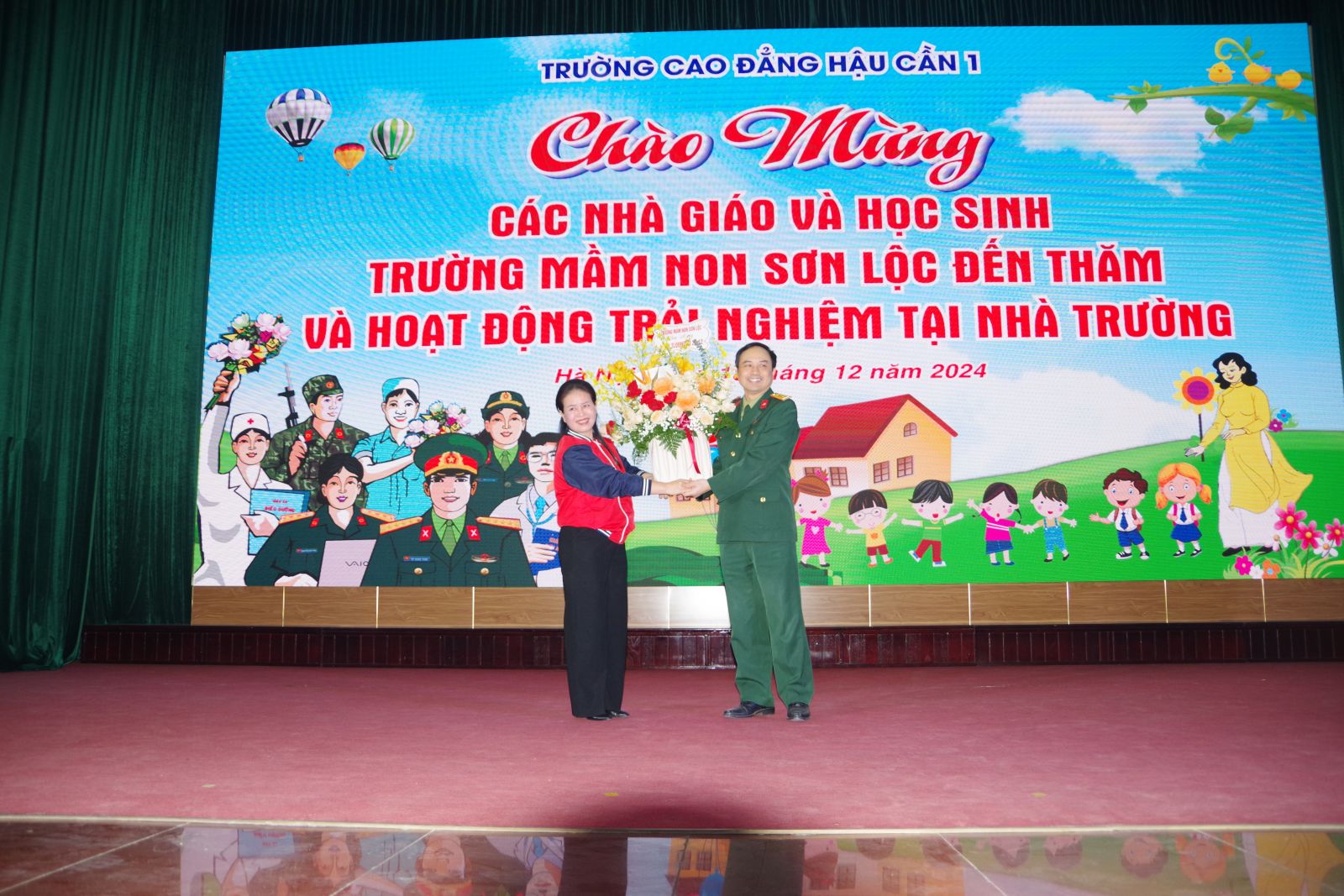Thay mặt cho lãnh đạo, chỉ huy Nhà trường, đồng chí Đại tá Nguyễn Văn Sáng - Uỷ viên Ban Thường vụ, Chủ nhiệm Chính trị Nhà trường trân trọng cảm ơn sự quan tâm của giáo viên, học sinh đến cán bộ, nhân viên, giảng viên, học viên và chiến sĩ Nhà trường và trao gửi quà tặng cảm ơn với Trường Mầm non Sơn Lộc.