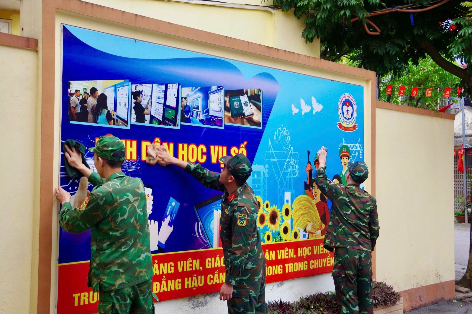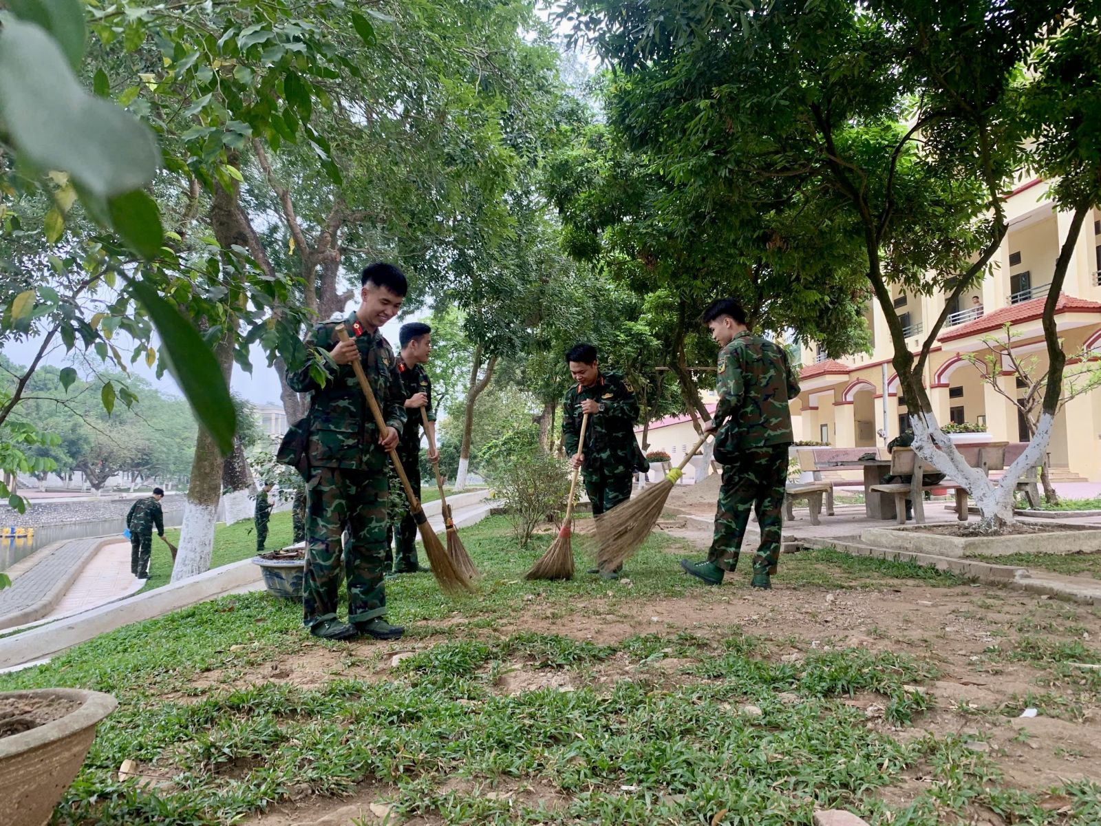 Ngay sau lễ phát động, Ban Tổ chức đã phát lệnh ra quân, các lực lượng nhanh chóng triển khai thực hiện các nội dung theo kế hoạch như: tổng vệ sinh doanh trại, khu học tập, khu làm việc; thu gom rác thải, phát quang bụi rậm; chỉnh trang khuôn viên, chăm sóc bồn hoa, cây cảnh; lau chùi pano, khẩu hiệu và các khu vực sinh hoạt chung trong Nhà trường.