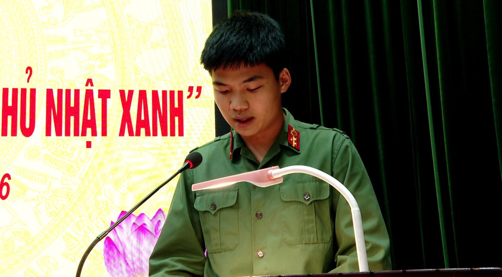 Đại diện đoàn viên thanh niên Thượng sĩ Tạ Quốc Phi Hùng, Học viên Tiểu đoàn 2 phát biểu hưởng ứng, thể hiện quyết tâm tích cực tham gia các hoạt động tình nguyện, góp phần nâng cao ý thức trách nhiệm trong giữ gìn cảnh quan môi trường, xây dựng đơn vị chính quy, xanh – sạch – đẹp.