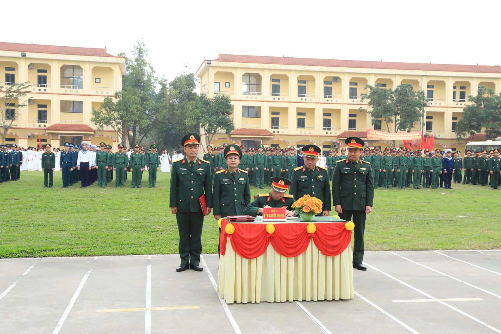 Sau phần phát động thi đua, đại diện các cơ quan, đơn vị đã ký kết giao ước thi đua, thể hiện quyết tâm thực hiện thắng lợi nhiệm vụ huấn luyện năm 2026. Buổi lễ kết thúc bằng màn duyệt đội ngũ trang nghiêm, thể hiện tinh thần chính quy, thống nhất và sức mạnh tập thể của toàn trường.