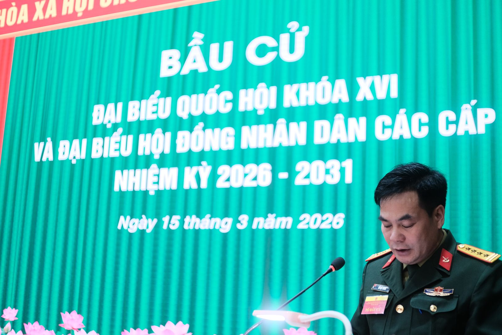 Phát biểu khai mạc, Đại tá Đỗ Việt Trung, Ủy viên Ban Thường vụ Đảng ủy, Phó Chính ủy Nhà trường, Tổ trưởng Tổ bầu cử nhấn mạnh: Cuộc bầu cử đại biểu Quốc hội khóa XVI và đại biểu Hội đồng nhân dân các cấp nhiệm kỳ 2026 – 2031 là sự kiện chính trị quan trọng của đất nước, thể hiện quyền làm chủ của nhân dân trong việc lựa chọn những đại biểu tiêu biểu, xứng đáng đại diện cho ý chí và nguyện vọng của nhân dân. Đồng chí yêu cầu Tổ bầu cử tổ chức điều hành chặt chẽ, hướng dẫn cử tri thực hiện đúng thể lệ bầu cử, bảo đảm quá trình bỏ phiếu diễn ra nghiêm túc, dân chủ và đúng quy định của pháp luật.