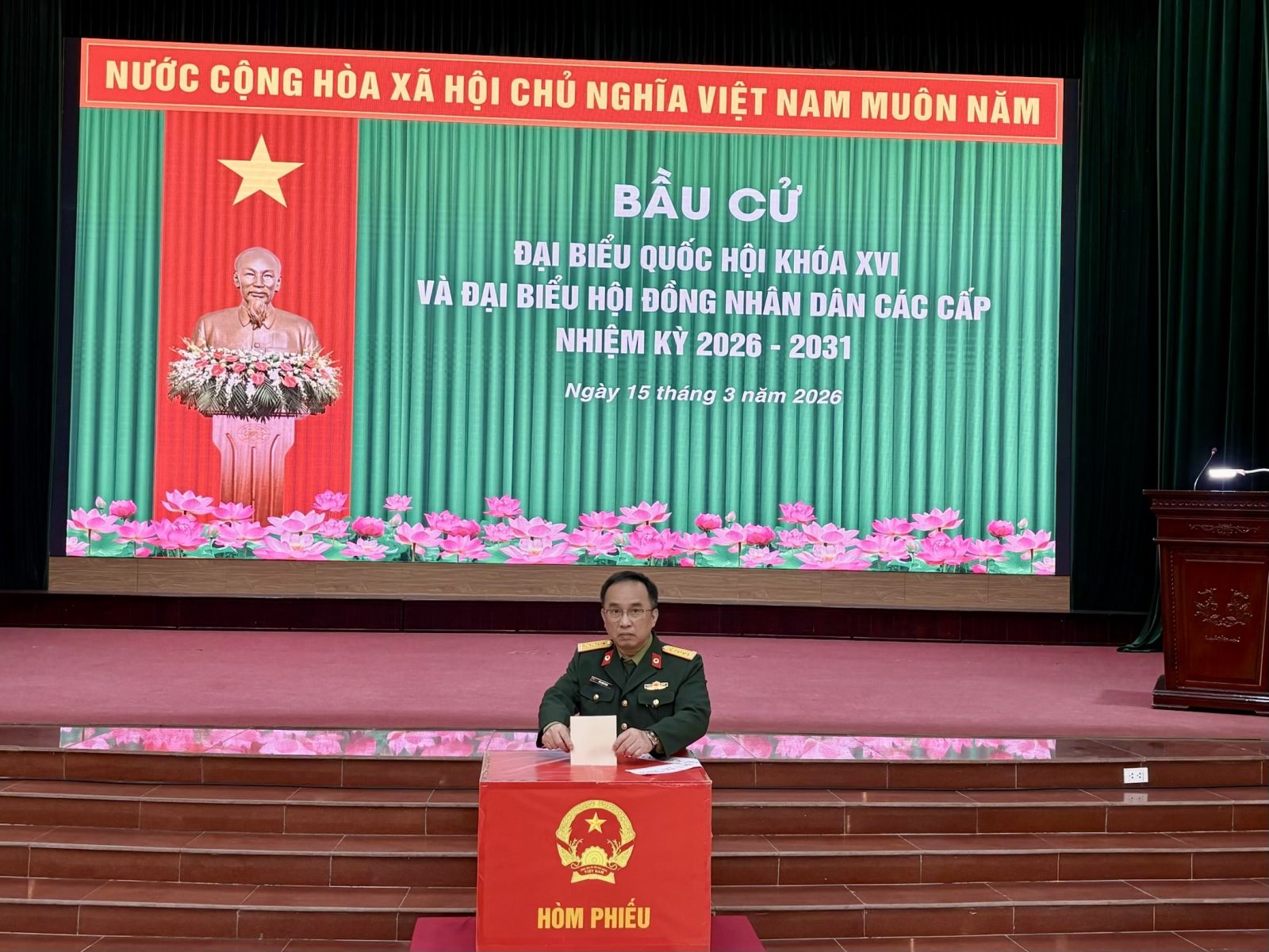 Sáng 15-3-2026, tại Trường Cao đẳng Hậu cần 1, khu vực bỏ phiếu số 57, phường Sơn Tây, thành phố Hà Nội, Nhà trường đã tổ chức bầu cử đại biểu Quốc hội khóa XVI và đại biểu Hội đồng nhân dân các cấp nhiệm kỳ 2026 – 2031.