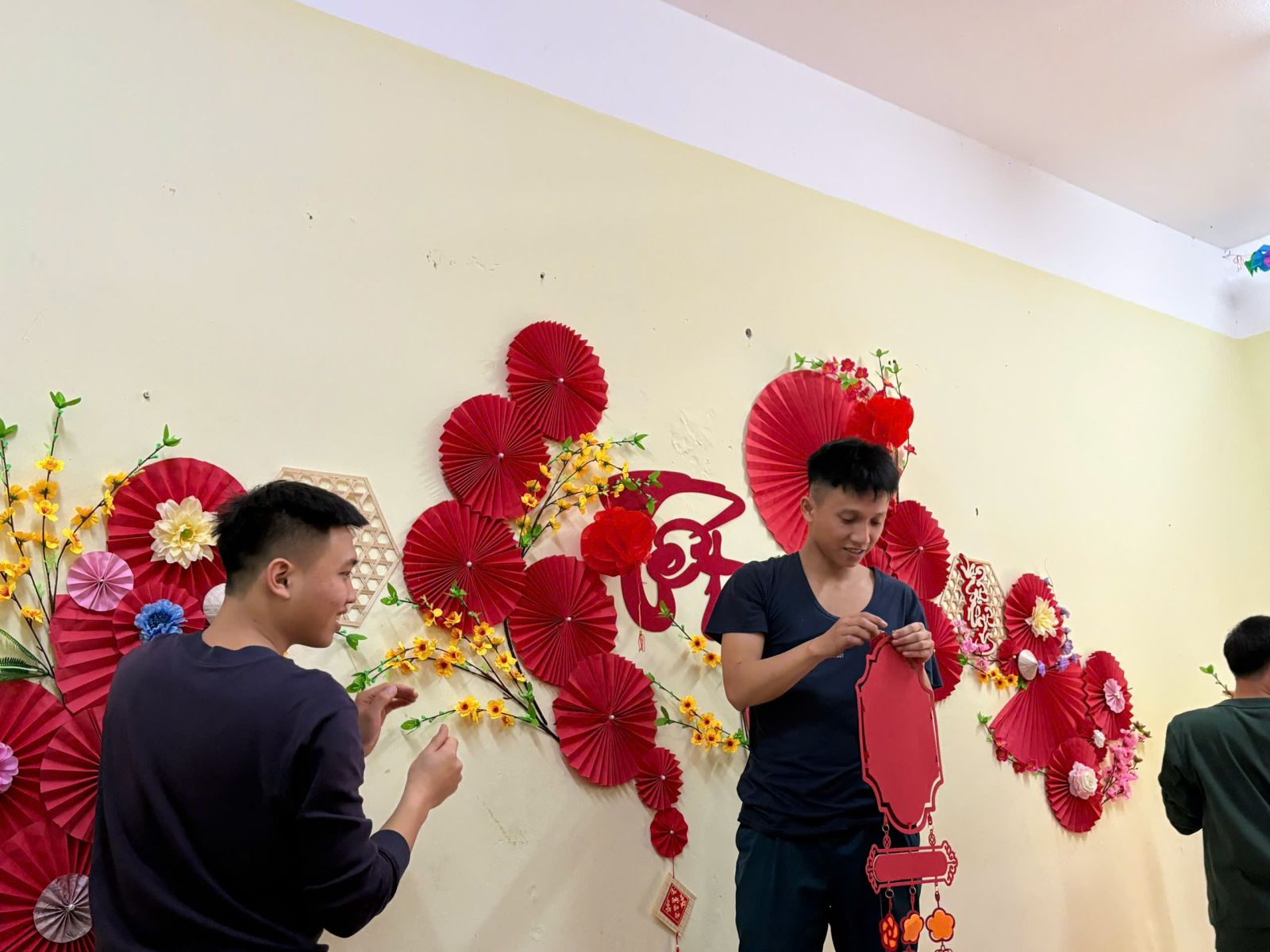 Trong sắc đỏ rực rỡ của cờ Đảng, cờ Tổ quốc và những khẩu hiệu mừng Đảng, mừng Xuân, cán bộ, giảng viên Nhà trường trong tà áo dài truyền thống đã lưu lại nhiều hình ảnh đẹp, thể hiện niềm vui, niềm tự hào và niềm tin vào năm mới thắng lợi. Các hoạt động chuẩn bị Tết như trang trí hội trường, sắp đặt mâm lễ, chuẩn bị bánh chưng, hoa đào, hoa mai… được triển khai chu đáo, tạo nên không khí rộn ràng, ấm áp.