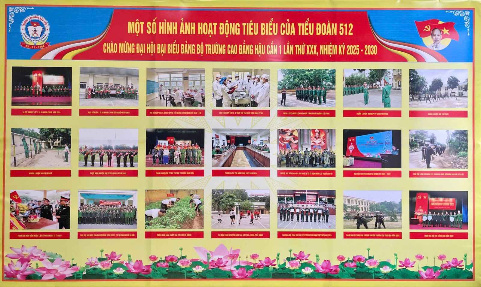 Hướng tới Đại hội Đảng các cấp, hoà chung trong không khí chào mừng sự kiện trọng đại này. Tuổi trẻ Nhà trường đã năng động, sáng tạo trong thực hiện các nhiệm vụ. Trong đó, việc xây dựng bảng ảnh, báo tường không chỉ thể hiện sự sáng tạo, tinh thần trách nhiệm của đoàn viên, thanh niên mà còn là một hình thức tuyên truyền trực quan sinh động, góp phần lan tỏa khí thế sôi nổi của sự kiện. hoạt động thi đua sáng tạo trong thiết kế bảng ảnh, báo tường đã thu hút sự hưởng ứng nhiệt tình từ các đoàn viên, thanh niên. Những bài viết, tranh vẽ, hình ảnh được trình bày công phu, đầy ý nghĩa đã tạo nên những tác phẩm chất lượng, giàu tính nghệ thuật và mang đậm dấu ấn của tuổi trẻ, tiêu biểu có Liên chi đoàn 512, Chi đoàn cơ quan.