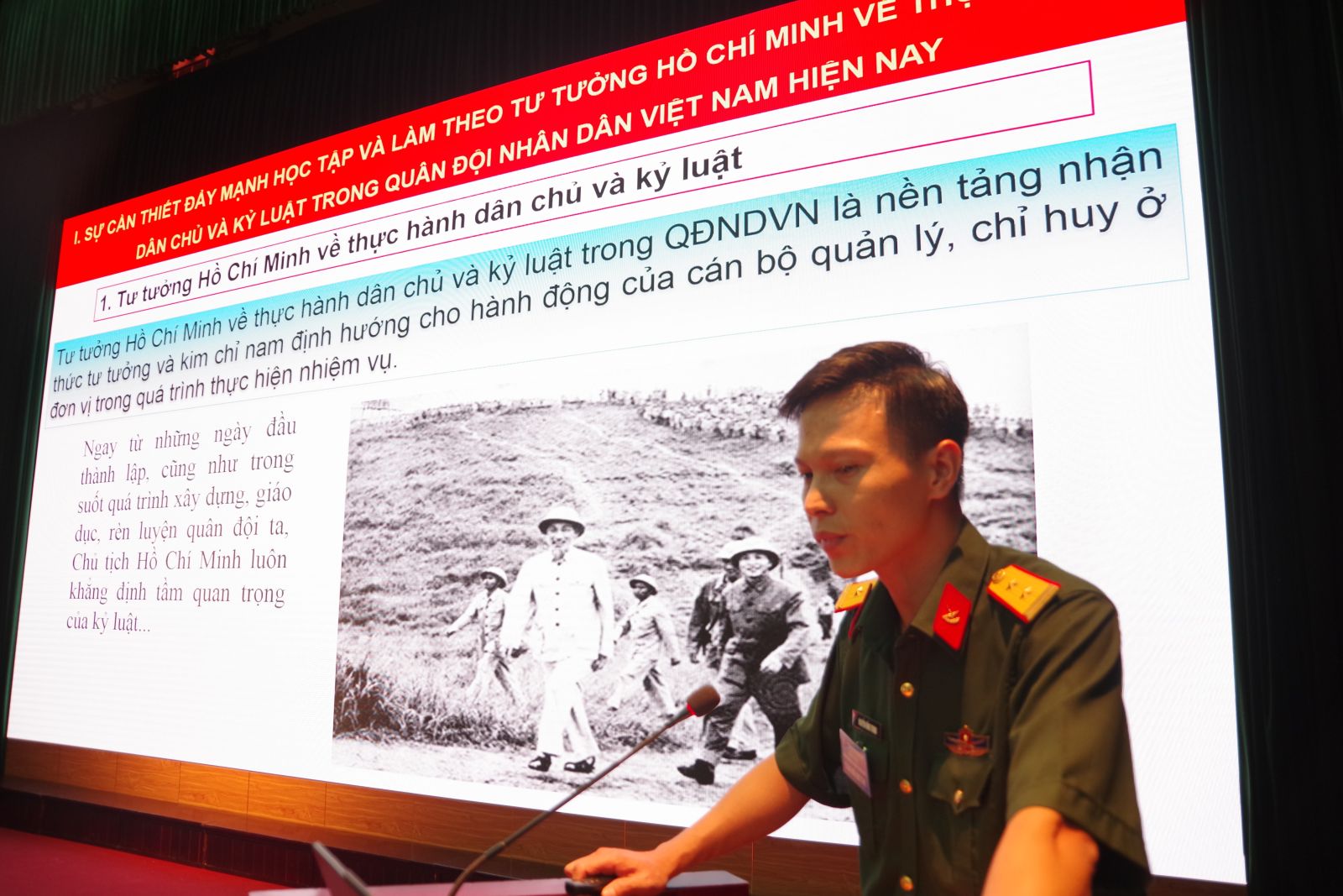 Đặc biệt trong phần thi thực hành giảng bài, các cán bộ dự thi đã bám sát đề cương, chủ động về thời gian, thuyết trình mạch lạc, dễ hiểu, dễ nhớ. Trong quá trình giảng đã kết hợp sử dụng phù hợp các phương pháp giảng dạy, nắm chắc nội dung, bảo đảm về thời gian, làm rõ được mục đích yêu cầu cần giáo dục, có sự phân tích, kết hợp giữa lý luận với thực tiễn. Nổi bật tại hội thi năm nay là có nhiều thí sinh sáng tạo trong khi giảng, thu hút người nghe, xử lý được các tình huống sư phạm tốt. Cách thức truyền tải thông tin phong phú, giải quyết mối quan hệ giữa các nội dung, chuyển ý linh hoạt và liên hệ thực tiễn sát với tình hình nhiệm vụ của đơn vị.