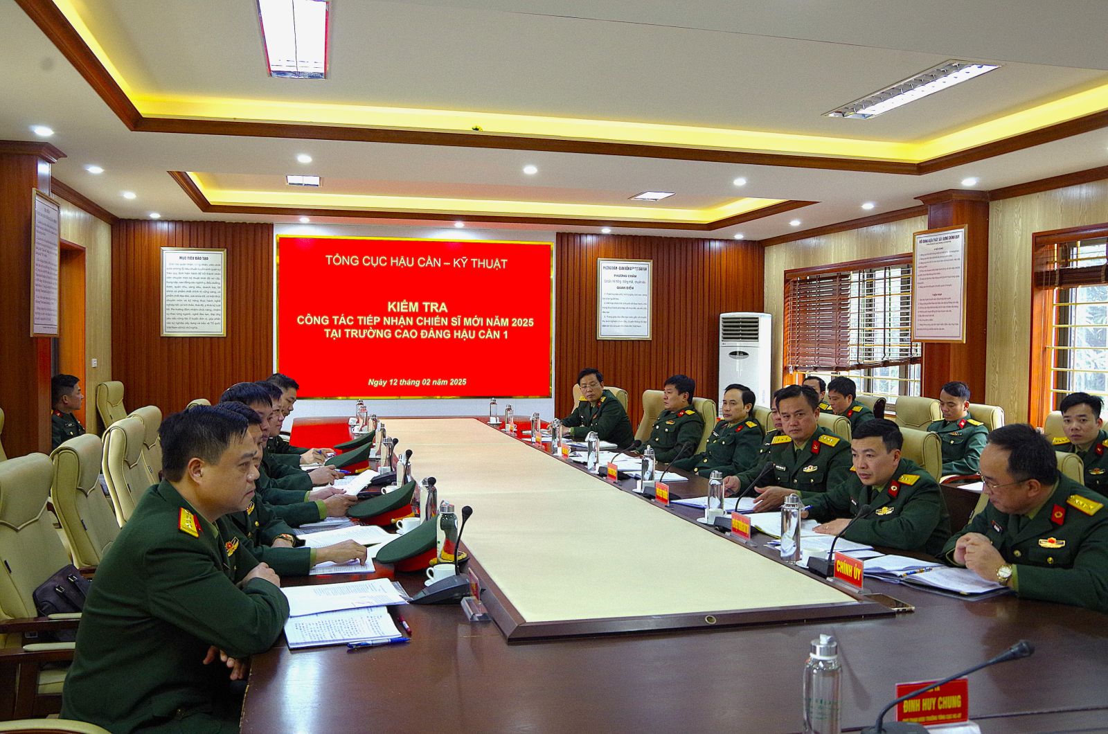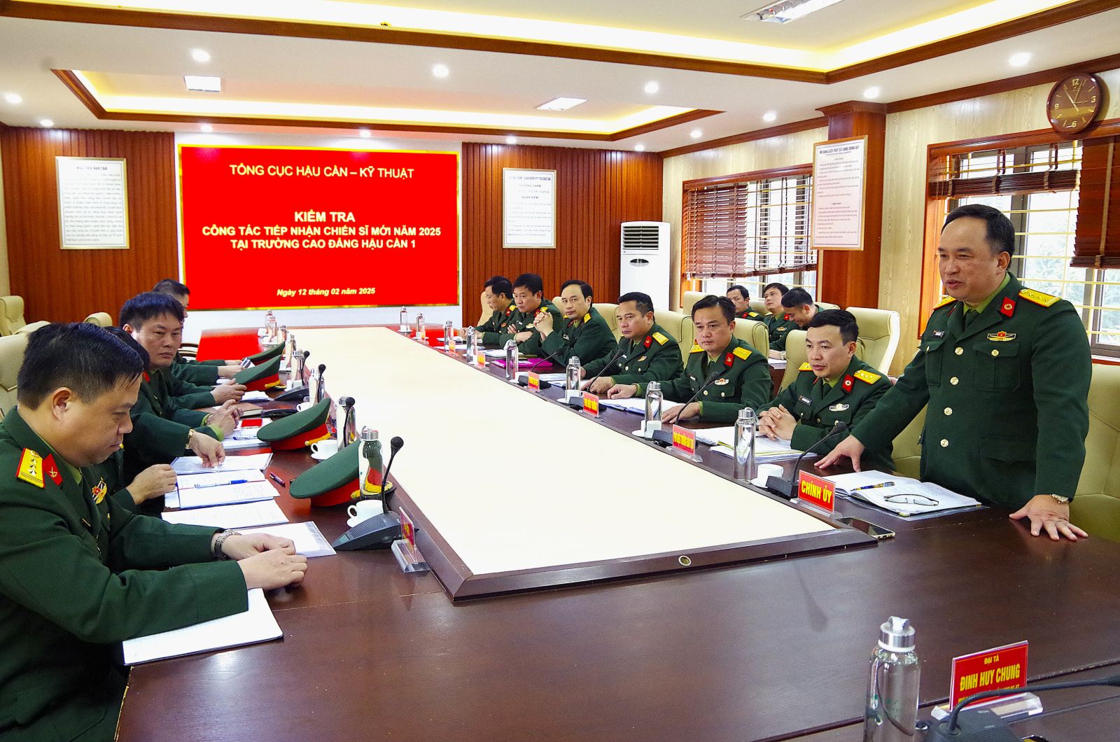Chiều ngày 12/2, Đoàn công tác của Tổng cục Hậu cần-Kỹ thuật do đồng chí Đại tá Đinh Huy Chung, Phó Tham mưu Tổng cục Hậu cần-Kỹ thuật làm trưởng đoàn, đã đến thăm và kiểm tra công tác chuẩn bị tiếp nhận chiến sĩ mới năm 2025 tại Trường Cao đẳng Hậu cần 1. Tham gia đoàn công tác có đại biểu chỉ huy của Phòng Quân lực; Phòng Quân huấn-Nhà trường; Tổng cục Hậu cần-Kỹ thuật; Phòng Tham mưu kế hoạch; Phòng Quân y, Cục Hậu cần-Kỹ thuật.