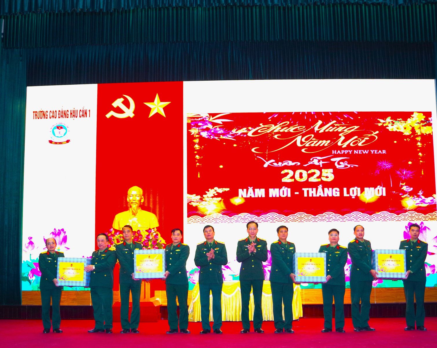 Tiếp thu ý kiến chỉ đạo của đồng chí Chính ủy Tổng cục Hậu cần, Đại tá Bùi Xuân Dũng, Bí thư Đảng ủy, Chính ủy Trường cao đẳng Hậu cần 1 đã gửi lời cảm ơn chân thành đến những tình cảm, sự quan tâm của lãnh đạo, chỉ huy Tổng cục Hậu cần đối với Nhà trường. Đây sẽ là nguồn động lực to lớn để cán bộ, chiến sĩ Trường cao đẳng Hậu cần 1 đoàn kết quyết tâm hoàn thành tốt và xuất sắc mọi nhiệm vụ được giao. Trong không khí vui tươi, phấn khởi chuẩn bị bước sang năm mới, đồng chí Trung tướng Đỗ Văn Thiện, Bí thư Đảng ủy, Chính ủy Tổng cục đã trao quà của Tổng cục tặng Nhà trường, 3 tiểu đoàn và cán bộ, giảng viên, nhân viên, có hoàn cảnh đặc biệt khó khăn trong Nhà trường.