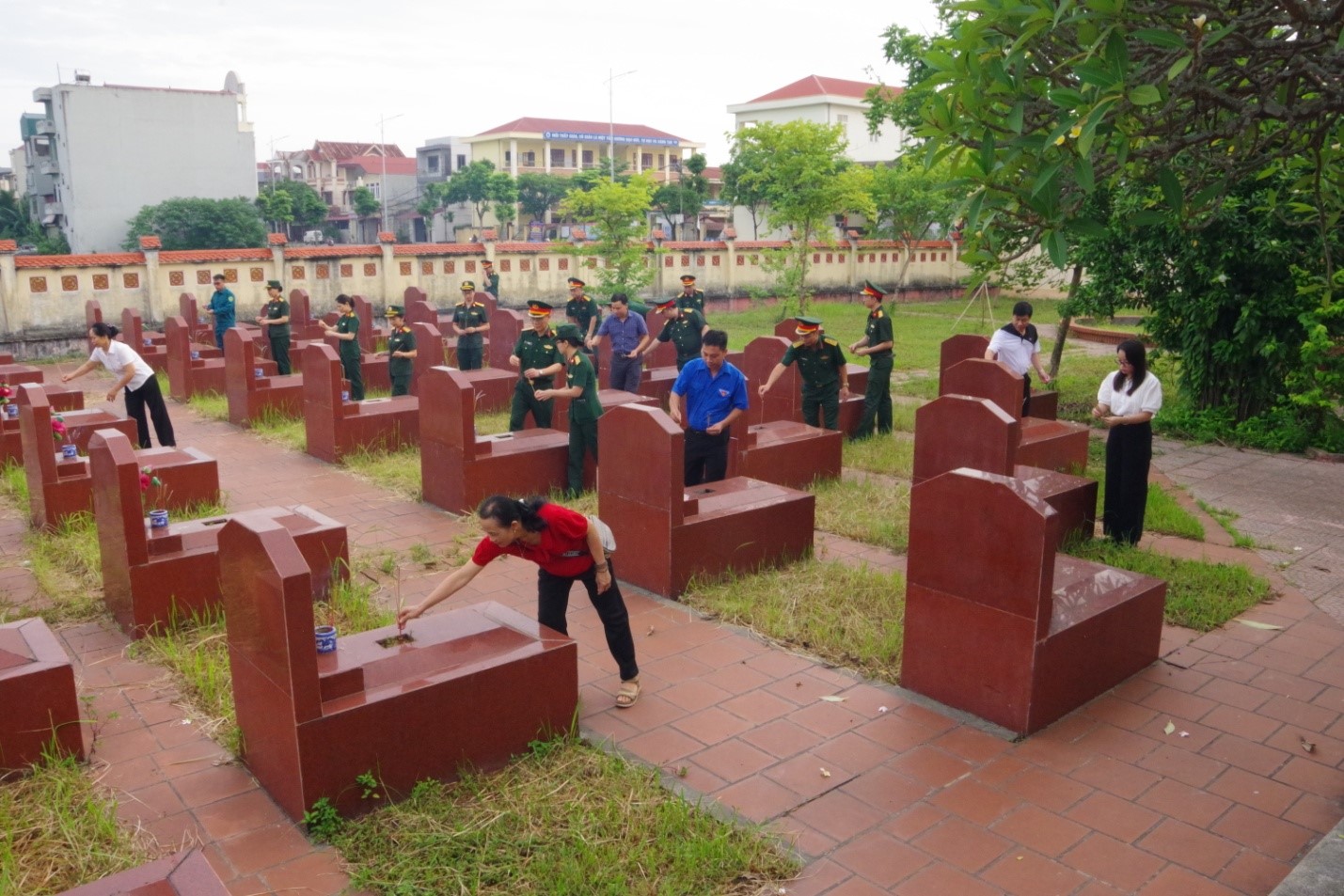 Trước khi tiến hành khám, tư vấn sức khỏe...cho các đối tượng đoàn công tác của Nhà trường cùng với lãnh đạo Đảng ủy, UBND, UBMTTQ, các ban ngành đoàn thể phường đã đặt vòng hoa, dâng hương tưởng niệm tại nghĩa trang liệt sỹ phường.